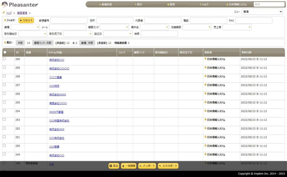 レコードを追加・削除できます。