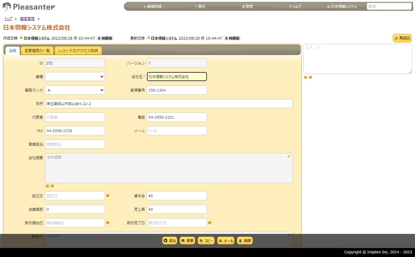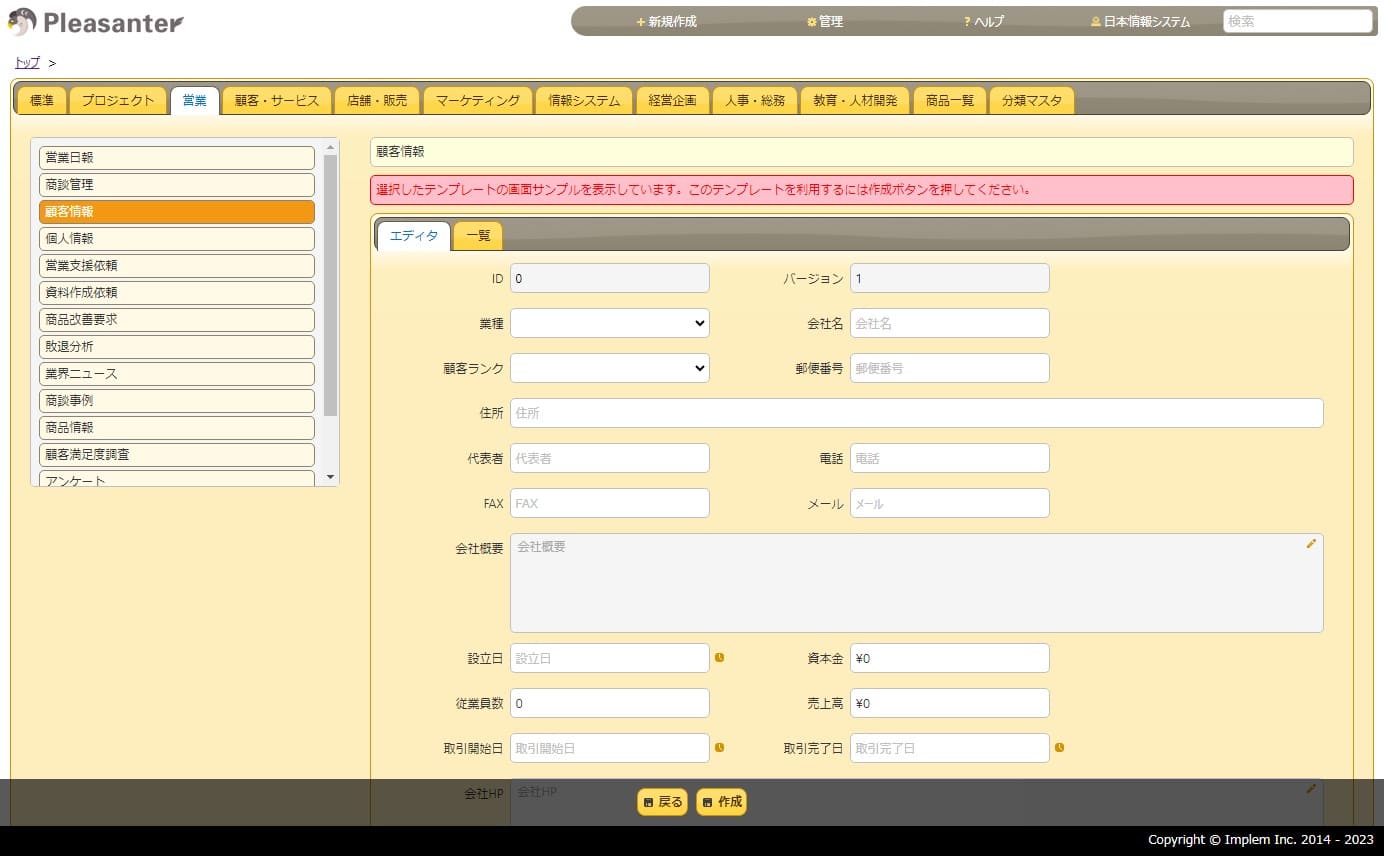 プリザンターの操作画面をご紹介します。